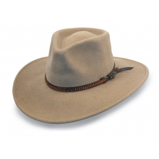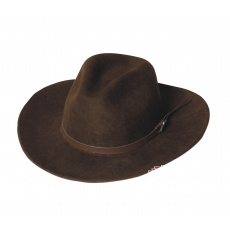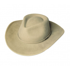 Klasický polyester-plstěný westernový klobouk s elegantní sponou na ozdobném pásku. Klobouk je odoln