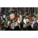 ruzne barvy malých lapačů snů na kožené šnůrce