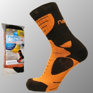 Anatomicky tvarované antibakteriální ponožky nanosox® AGTIVE PRO AN-ATOMIC jsou určeny pro zátěžové sporty, cestování nebo práci ve venkovním prostředí, zvláště pak v chladném počasí. Jsou kvalitní ve schopnosti absorpce vlhkosti, prodyšnosti, pružnosti a příjemného pocitu na nohou. Nanočástice stříbra, které jsou obsaženy v celém objemu ponožky, mají širokospektrální antibakteriální a protiplísňové účinky.
