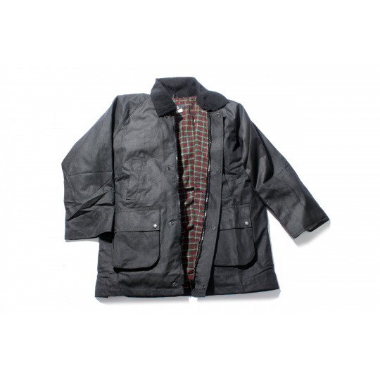 Australská Oilskin bunda Road s manšestrovým límcem, spousta vnějších a vnitřních kapes. Délka 90 cm.