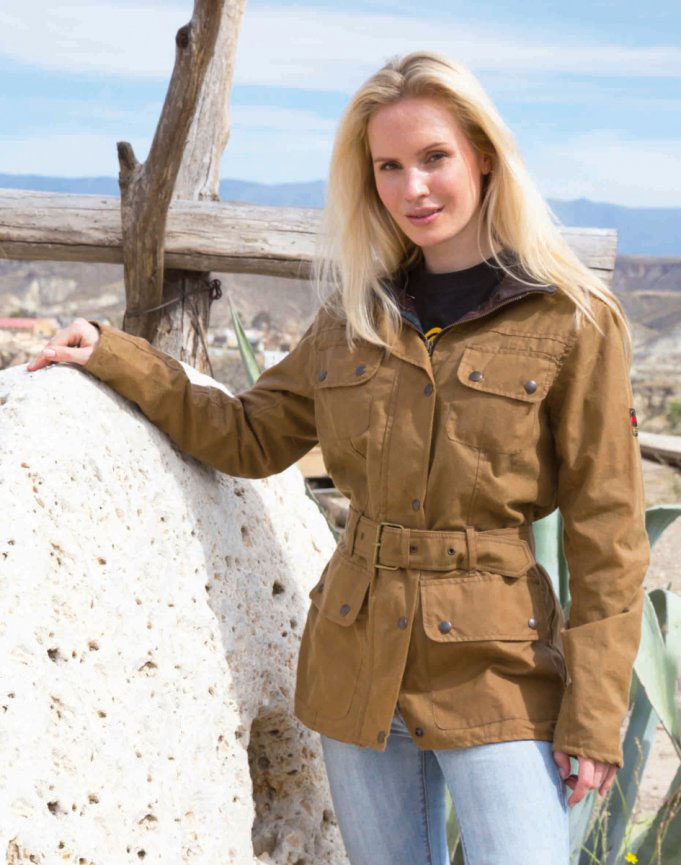 Čtyři velké kapsy se zajištěním na druky. Stojatý límec z kvalitní impregnované kůže, který nebarví. Praktický pásek na stažení v pase, který lze snadno odejmout.