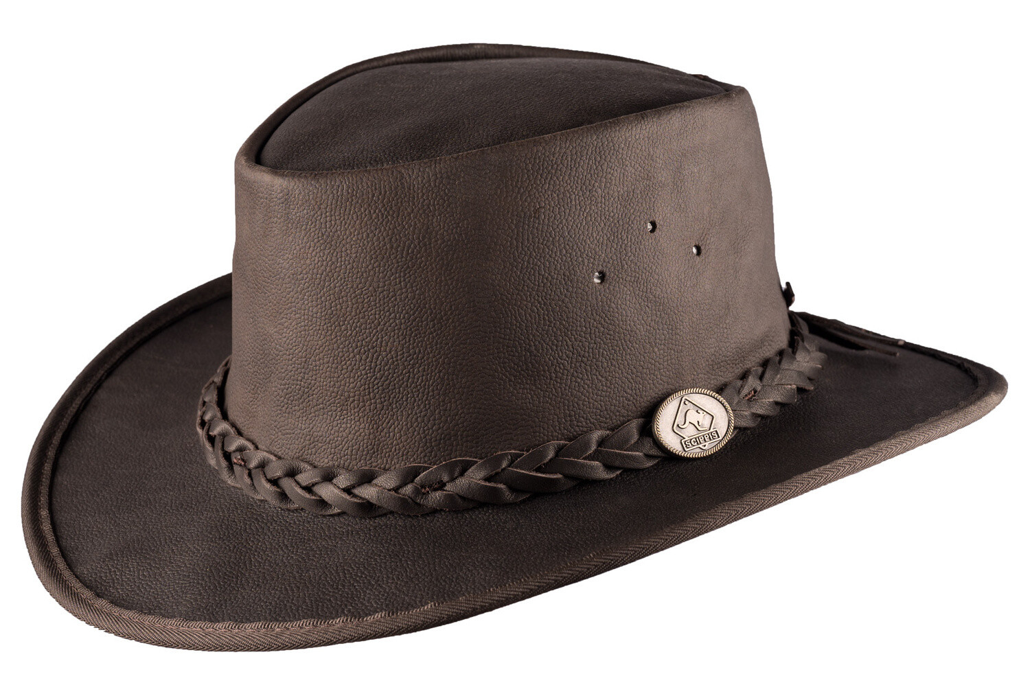 Klobouky z lehké a oděruvzdorné klokaní kůže jsou vždy něčím výjimečné. SCIPPIS Talaroo je klasický klobouk ve stylu australského vnitrozemí. Je měkký a vyrobený z kůže s jemnou strukturou. Elastický pásek uvnitř klobouku poskytuje extra pohodlí. Za své odolné vlastnosti a jedinečný vzhled vděčí především kvalitně zpracované klokaní kůži, které jsou získávány podle zákona australské federální vlády na ochranu přírody. Kožený klobouk je čistá příroda a přírodní stopy, jako lehké škrábance, jizvy apod. jsou autentické díky drsné divočině pátého kontinentu, tvoří originalitu výrobku a jsou považovány za přirozenou vlastnost. Kamenná struktura kůže a pletený kožený pásek na klobouku završují jedinečný vzhled této klasiky! Použitá kůže Full grain je jednou z nejpevnějších a nejlehčích kůží, které jsou k dispozici na trhu.