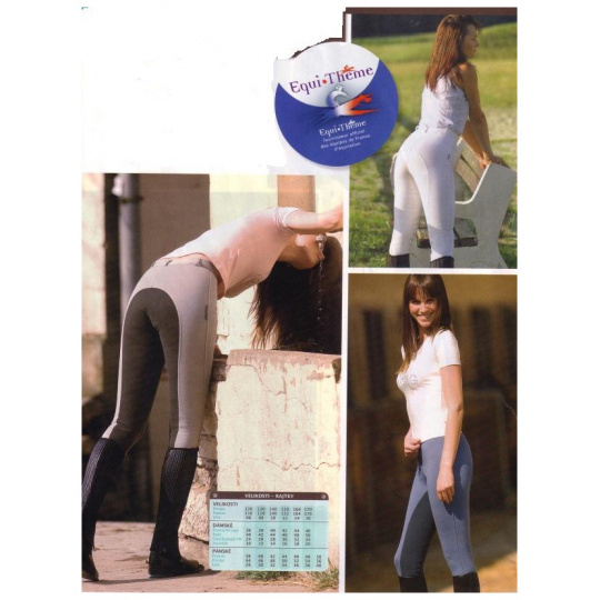 92% bavlna, 8% elastan. Sed Clarino 60% nylonové mikrovlákno, 40% polyuretan. Clarino je syntetický material nahrazující kůži, který výborně přilne k sedlu, snadná péče. přiléhavý střih.