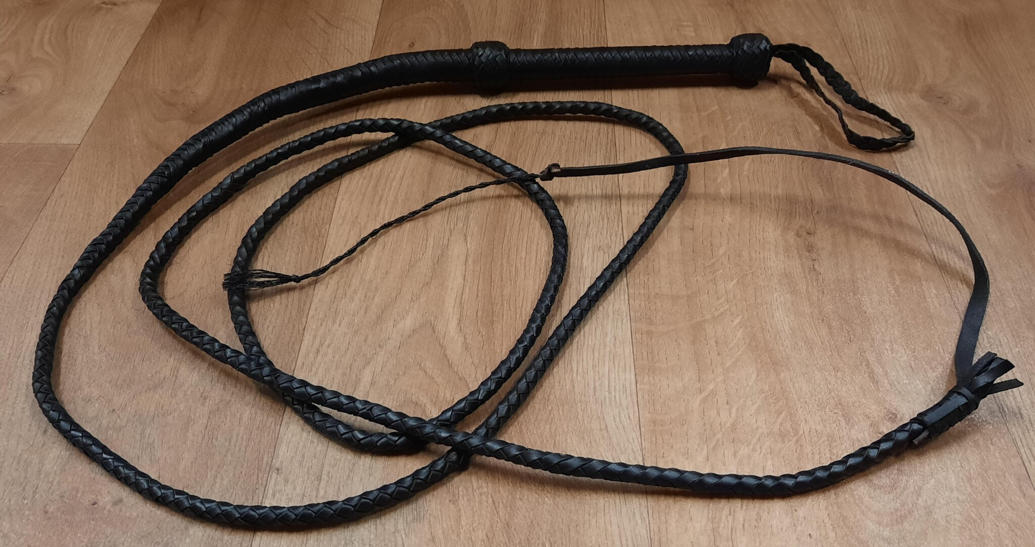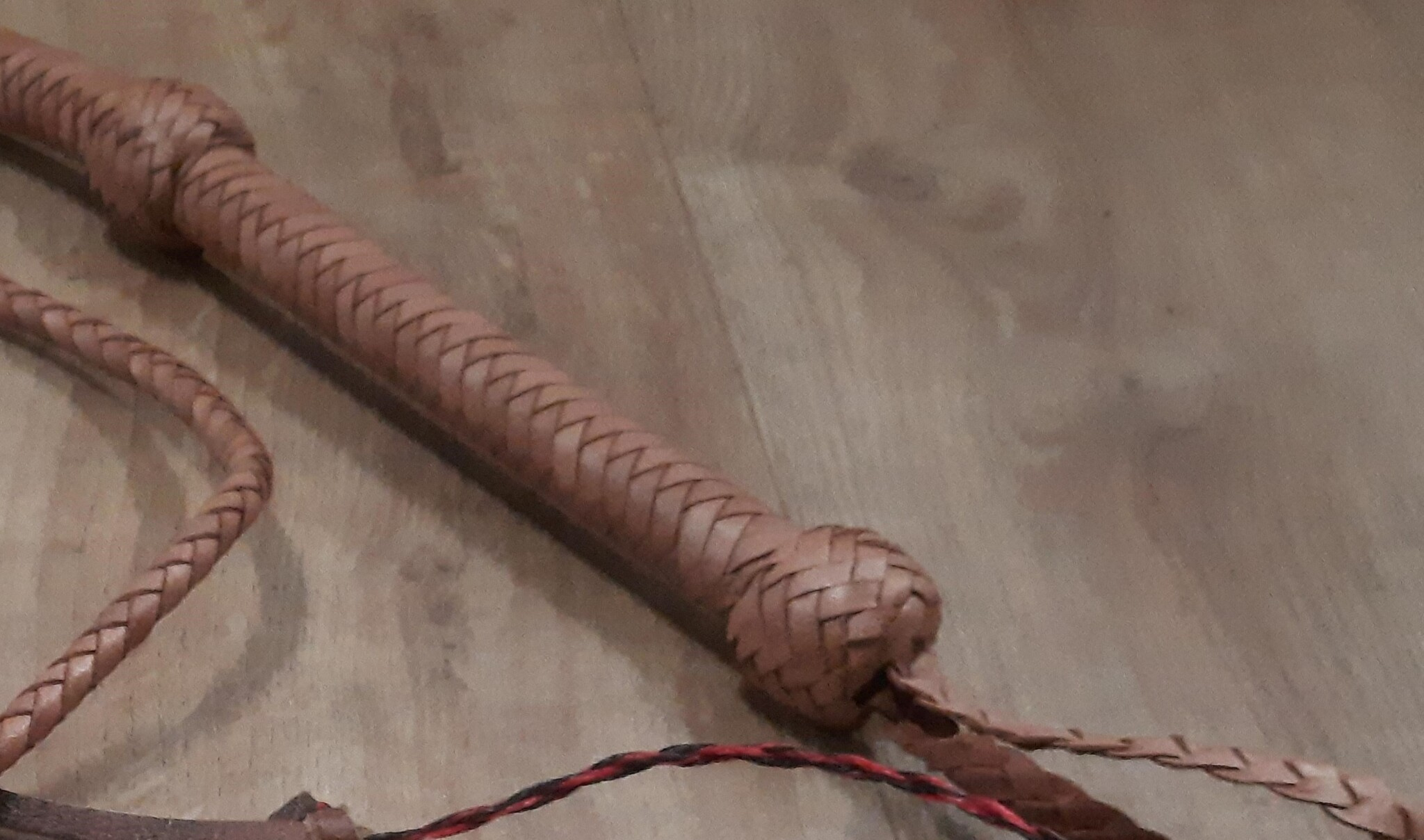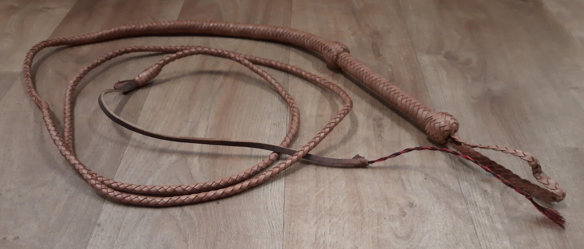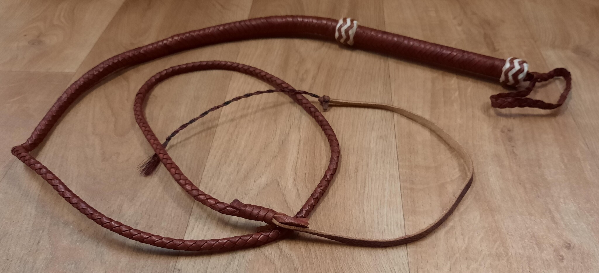 Levný kožený honácký bič. Funkční kožený bič kvalitně odpovídající ceně - tzn. že nejspíš po prvních pár prásknutích uletí práskačka. Lze snadno připevnit zpět podle možností - zapletení, zašití, zalepení....ap.