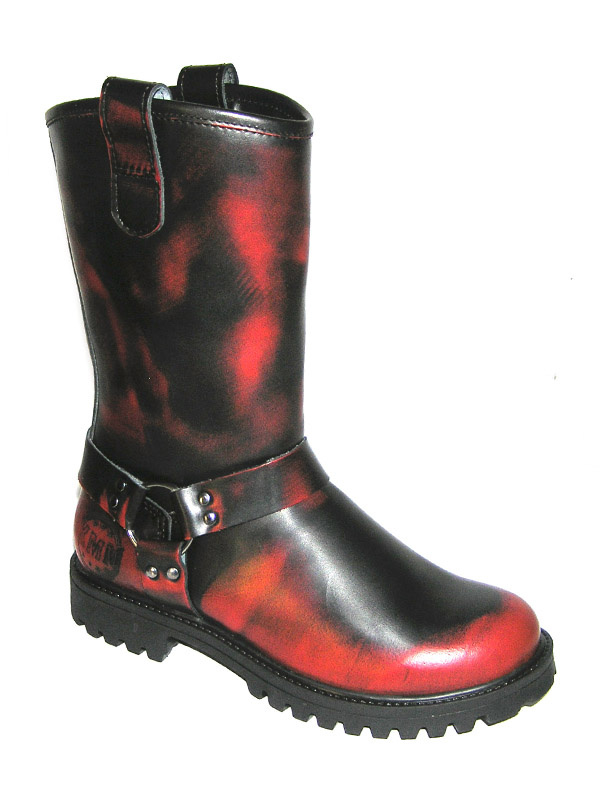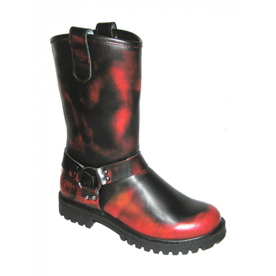 Kvalitní stylové motorkářské boty - půllitry vyráběné českou firmou v polské manufaktuře. Svršek je ušit ze silné hovězí usně. Lehká originální pryžová polstrovaná podrážka Aston KMM The original boots s výrazným vzorkem a logem výrobce zaručuje pohodlnou chůzi. Trojité švy zaručují dlouhodobou odolnost. Oproti vzhledově podobným botám jiných výrobců se obuv KMM vyznačuje vysokou jakostí použitých materiálů, precizním zpracováním a opravdu dlouhou životností. Vnitřní části jsou vyztuženy syntetickým materiálem, po stranách boty se nachází krátký zip pro lepší nazouvání. - kvalitní hovězí kůže - bez ocelové špičky - "lehká" pryžová podrážka ASTON - z vnitřní strany krátký zip Materiál: svršek - 100% kůže, podešev - 100% PVC, podšívka - 55% kůže, 45% textil Výška: cca 31 cm Barva: černá, prosvítající červená Velikost: 36 - 47 Orientační rozměry: Údržba bot: Vyčistěte nečistoty vlhkým hadříkem a nechte zaschnout. Poté klasicky naneste správnou barvu vosku na boty a podle potřeby na botách obnovte lesk.