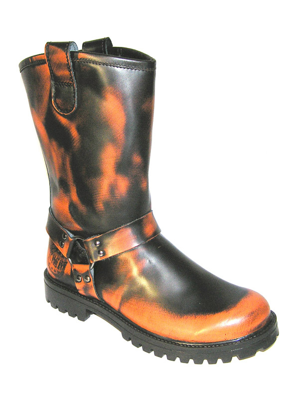 Kvalitní stylové motorkářské boty - půllitry vyráběné českou firmou v polské manufaktuře. Svršek je ušit ze silné hovězí usně. Lehká originální pryžová polstrovaná podrážka Aston KMM The original boots s výrazným vzorkem a logem výrobce zaručuje pohodlnou chůzi. Trojité švy zaručují dlouhodobou odolnost. Oproti vzhledově podobným botám jiných výrobců se obuv KMM vyznačuje vysokou jakostí použitých materiálů, precizním zpracováním a opravdu dlouhou životností. Vnitřní části jsou vyztuženy syntetickým materiálem, po stranách boty se nachází krátký zip pro lepší nazouvání. - kvalitní hovězí kůže - bez ocelové špičky - "lehká" pryžová podrážka ASTON - z vnitřní strany krátký zip Materiál: svršek - 100% kůže, podešev - 100% PVC, podšívka - 55% kůže, 45% textil Výška: cca 31 cm Barva: černá, prosvítající oranžová Velikost: 36 - 47 Orientační rozměry: Údržba bot: Vyčistěte nečistoty vlhkým hadříkem a nechte zaschnout. Poté klasicky naneste správnou barvu vosku na boty a podle potřeby na botách obnovte lesk.