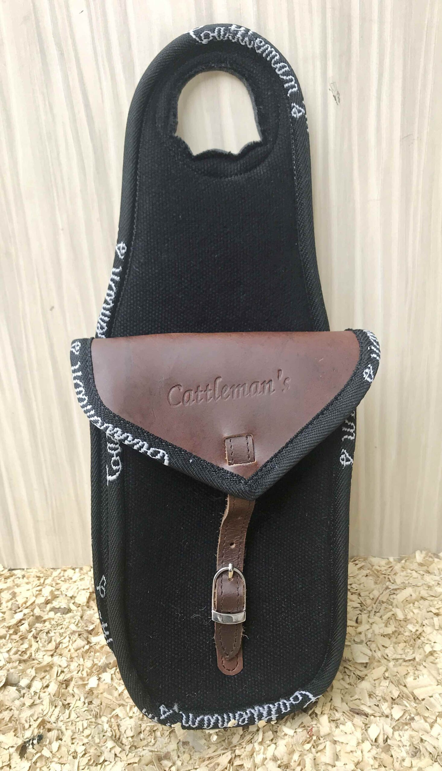 Brašna na hrušku na westernové sedlo Cattlemans vyrobena z tradičních materiálů, silný canvas a kůže. Kování je z nerezové oceli.