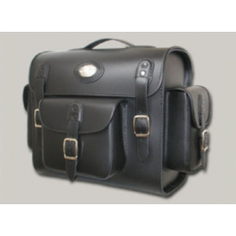 Ručně vyráběná cestovní brašna z hovězí kůže s třemi vnějšími kapsami. Na zadní části je přizpůsobena pro snadné přichycení k opěrce spolujezdce nasunutím na polštářek opěrky. Horní víko je pevně přichyceno na zadní straně brašny a zajištěno dvěma koženými pásky s okovanými konci a masivními přezkami. Praktické kožené ucho na horní straně brašny. Víka vnějších kapes jsou také zajištěna koženými pásky s okovanými konci a masivními přezkami.