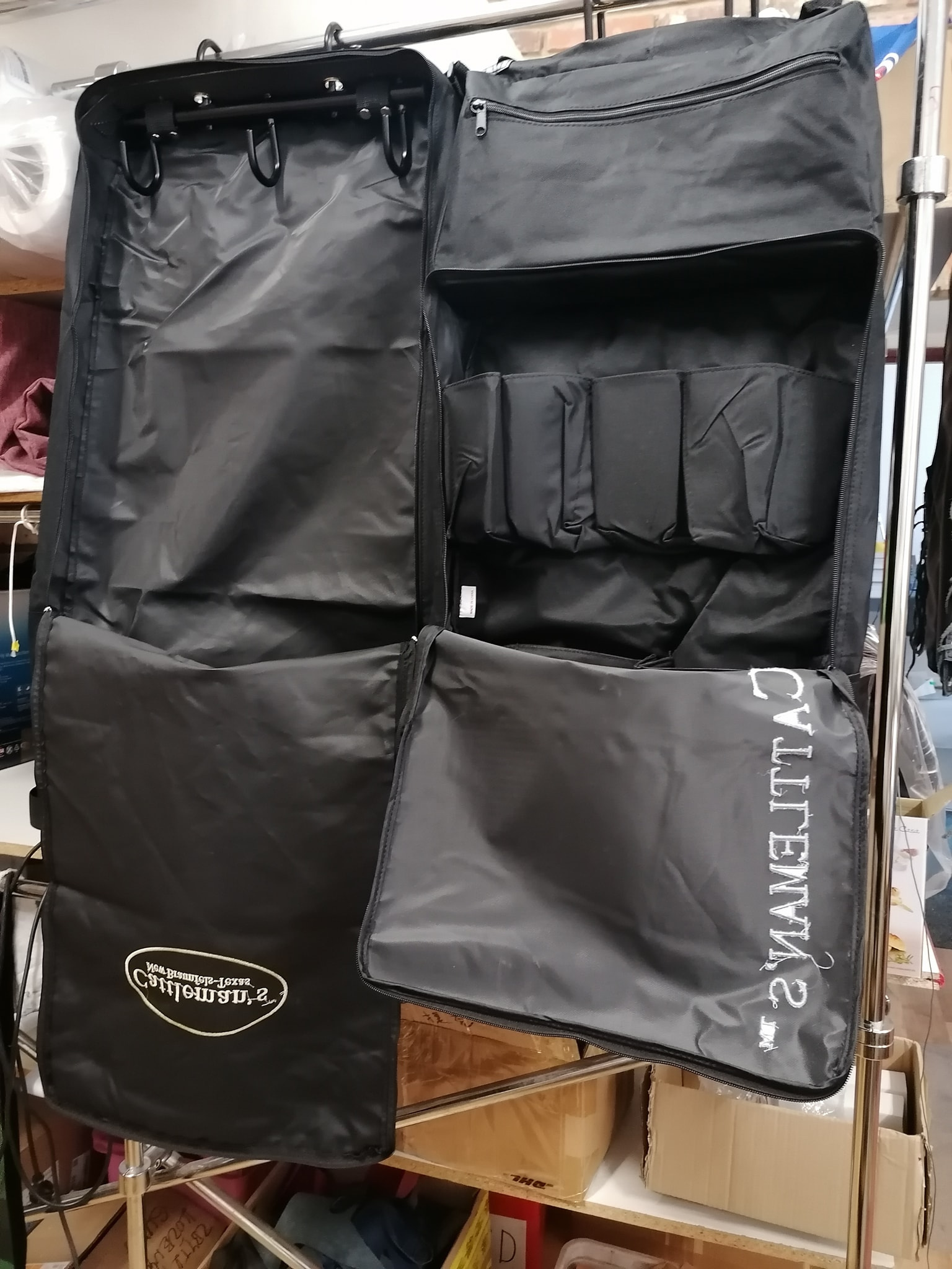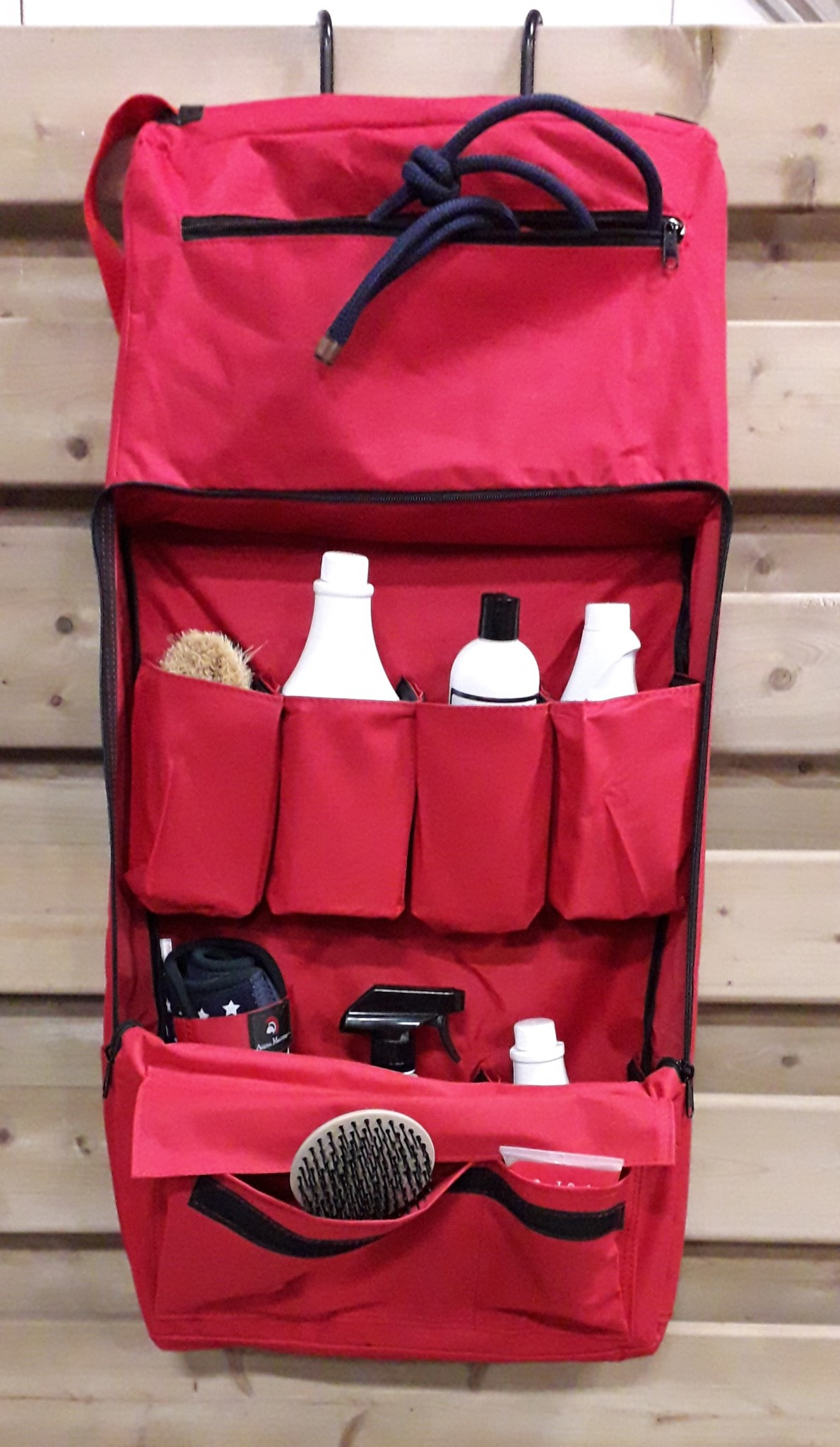 Velká brašna/vak Cattlemans na čištění, kosmetiku ap. z pevného textilního materiálu se sedmi vnitřními kapsami a velkou vnější kapsou. Nastavitelný popruh pro přehození přes rameno, háčky na pověšení, kvalitní zipy YKK.