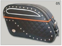 Brašny jsou spojeny širokým koženým pásem uřčeným pro snadné přichycení na motocyklu pod sedlem spolujezdce. Kožené pásky na spodní straně vnitřní části brašen slouží k zamezení pohybu brašen při jízde. Zdobené na vnější straně chromovanými ocelovými drucky, na boku spodní části panelem z měkké prošívané kůže a kovovým emblémem. Široké víko je zdobeno panelem z měkké kůže s bílým lemem, na bocích je přichyceno suchými zipy a zajištěno masivními přezkami na přední a zadní straně.