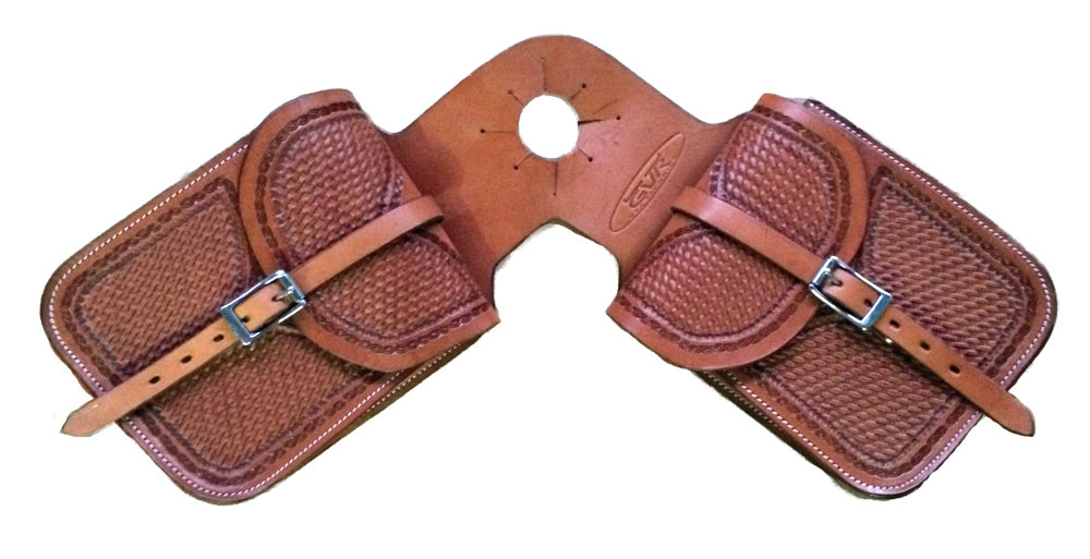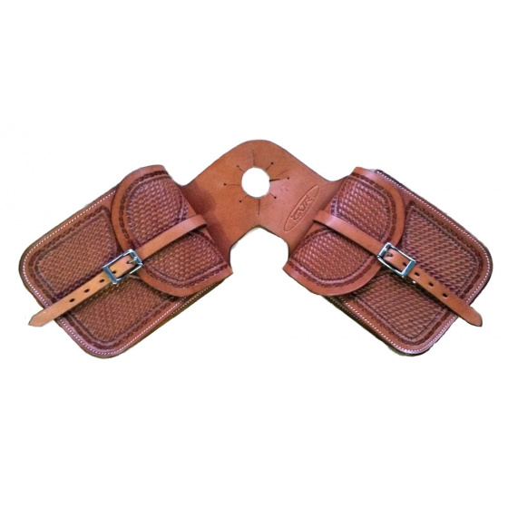 Brašny na hrušku westernového sedla vyrobeny z prvotřídní kůže Sadesa zdobené jemným basketem. Nerezové kování.