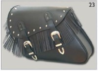 Brašny jsou spojeny širokým koženým pásem určeným pro snadné přichycení na motocyklu pod sedlem spolujezdce. Kožené pásky na spodní straně vnitřní části brašen slouží k zamezení pohybu brašen při jízde. Tvarované víko zdobené chormovanými ocelovými drucky je pevně přichyceno na vnitřní straně brašny a zajištěno dvěma šikmými koženými pásky s masivními přezkami na vnější straně.