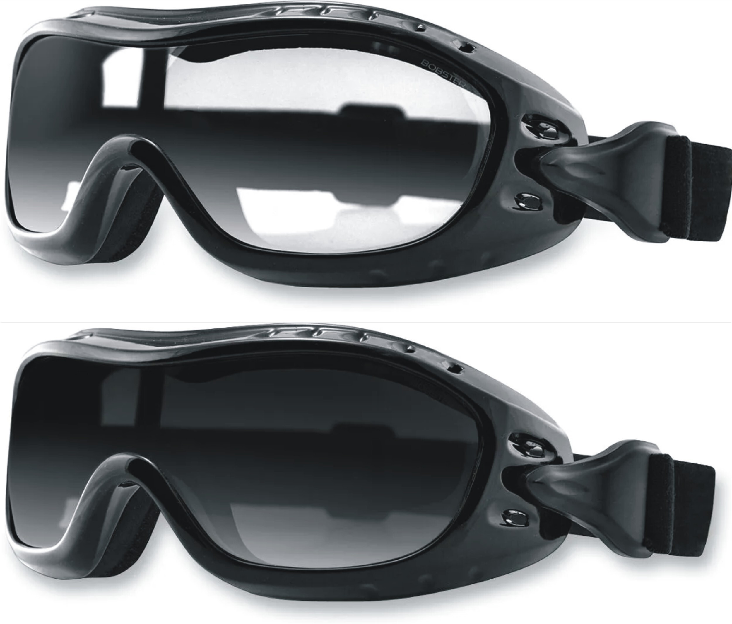 Stylové brýle na motocykl Bobster Night hawk v různých provedeních barevnosti skel vhodné pro jezdce, kteří nosí dioptrické brýle.
