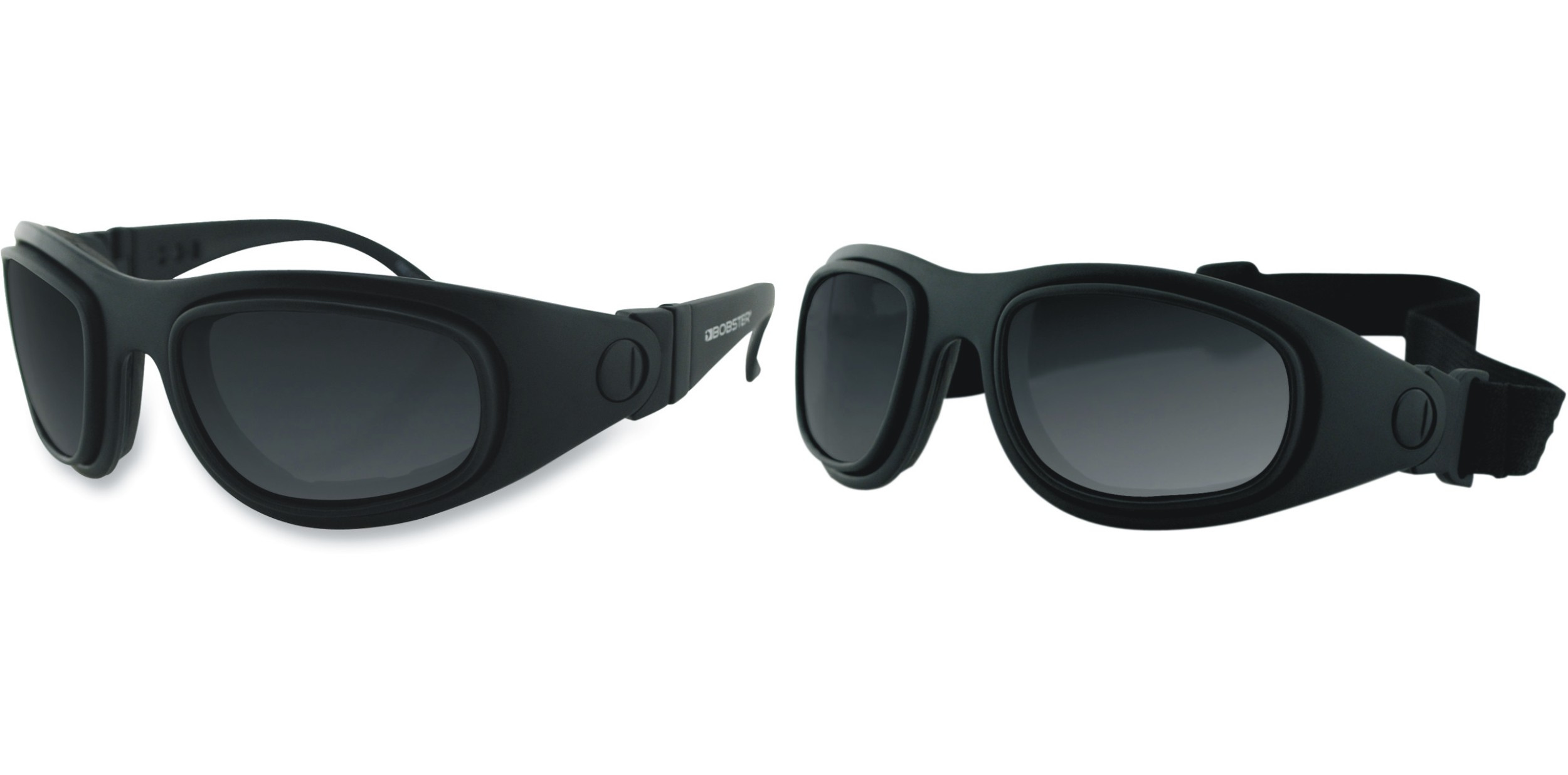 Variabilní brýle na motocykl s vyměnitelnými skly, možnost použít s nožičkami nebo elastickým páskem.Více