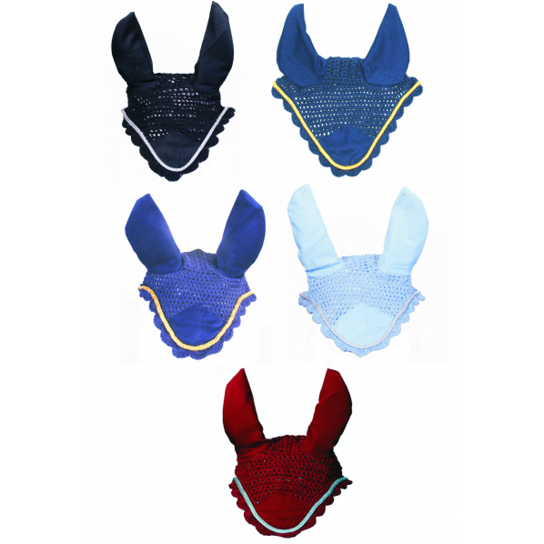 Bavlněné háčkované náušníky s ozdobným lemem, účinná ochrana proti hmyzu.