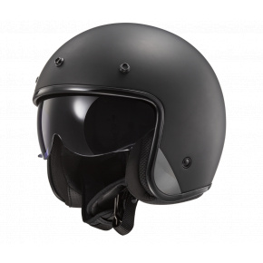 Otevřená (jet) přilba s výklopným plexi-štítkem, sluneční clonou a rychloupínáním. Skořepina: pl