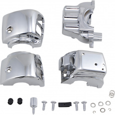 Sada krytů Kuryakyn pro zakrytí nádobky brzdové/spojkové nádobky, držáků a souvisejících částí brzd. Snadný způsob, jak zakrýt chromem poslední nevzhledné kousky na řídítkách.