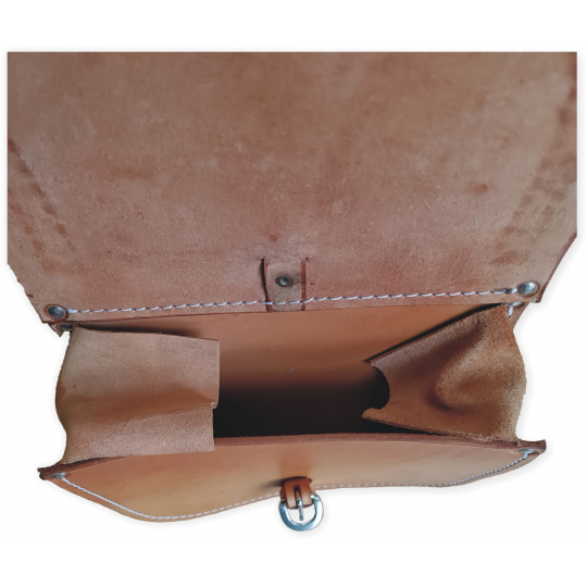Materiál: hovězí kůže 3-4 mm silná, nerez kování