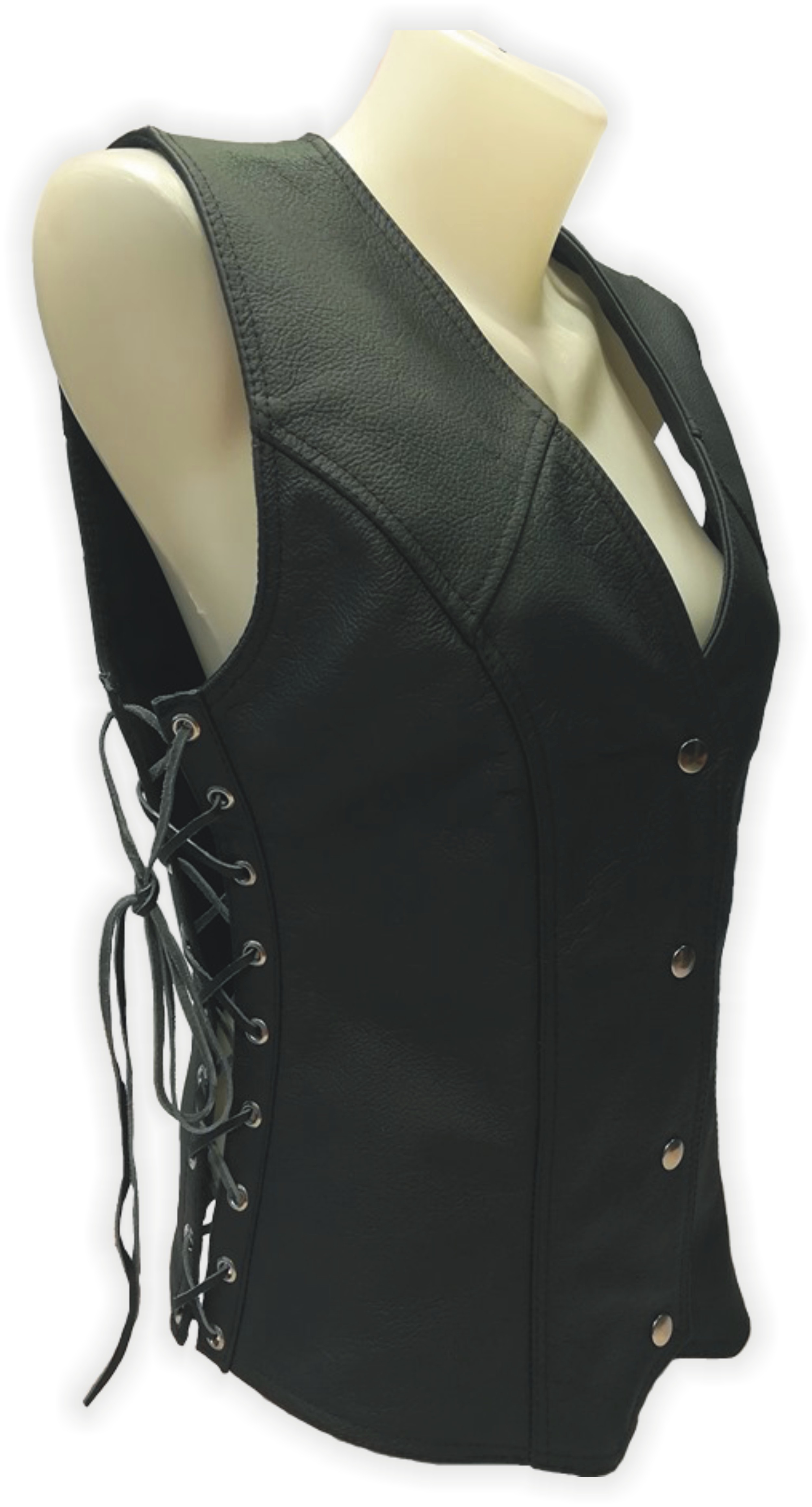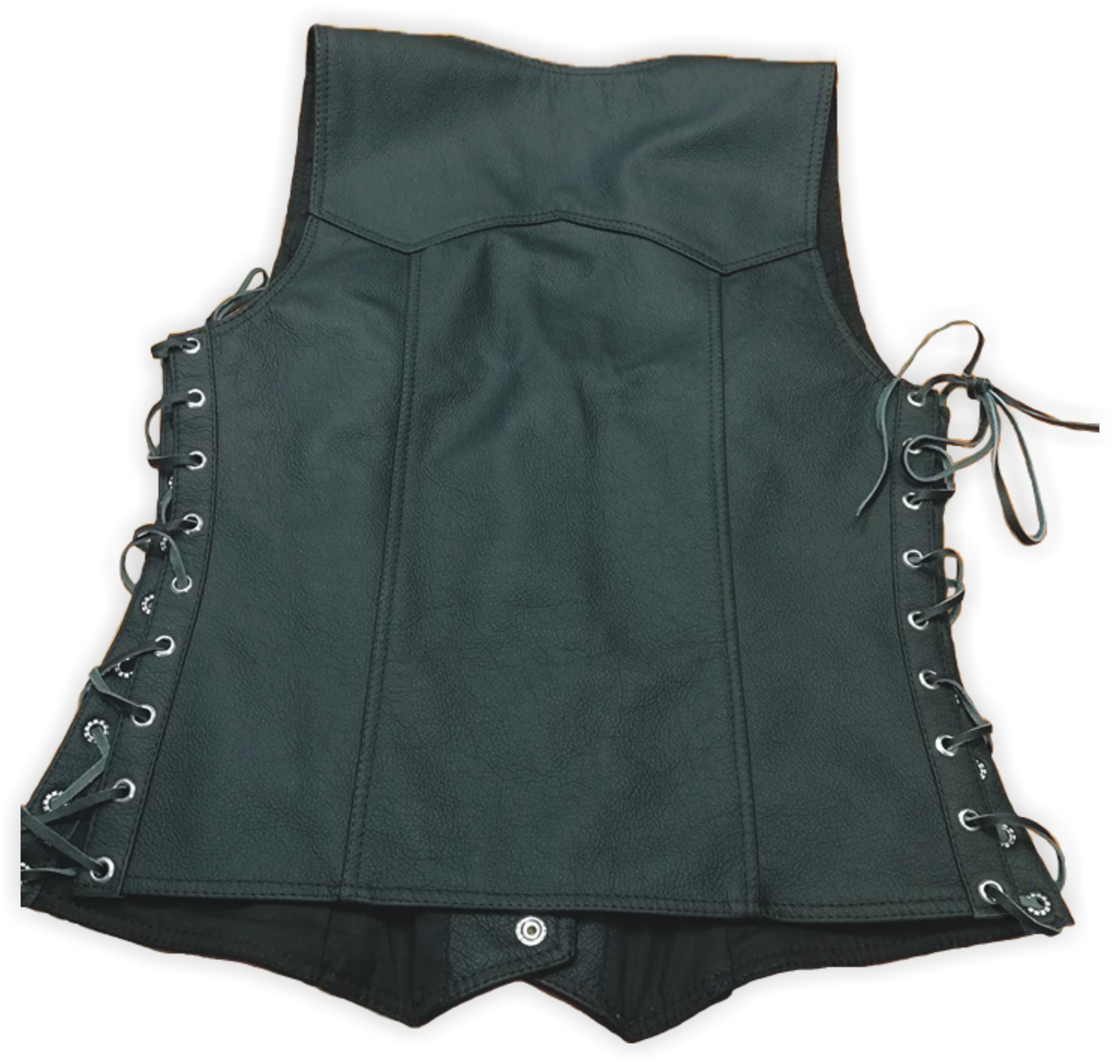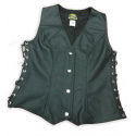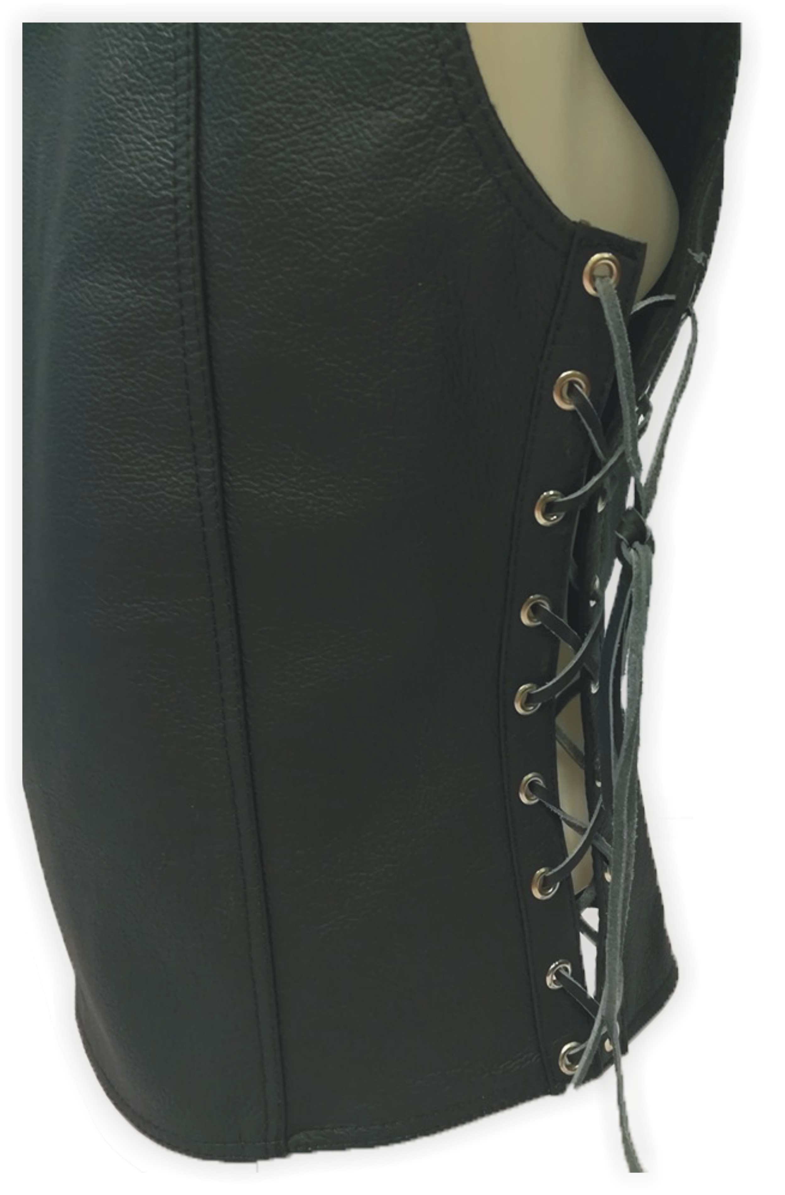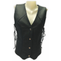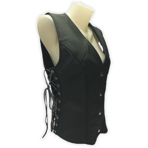 Motorkářská, mírně prodloužená, dámská vesta klasického střihu se šněrováním na bocích z nejkvalitnější hovězí kůže BIKERSMODE VD-4.