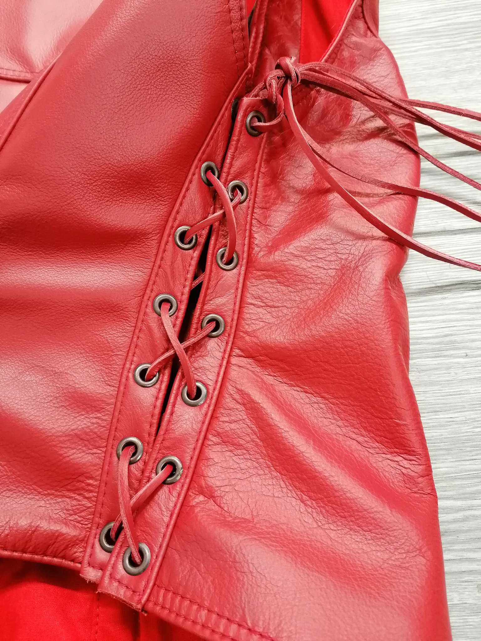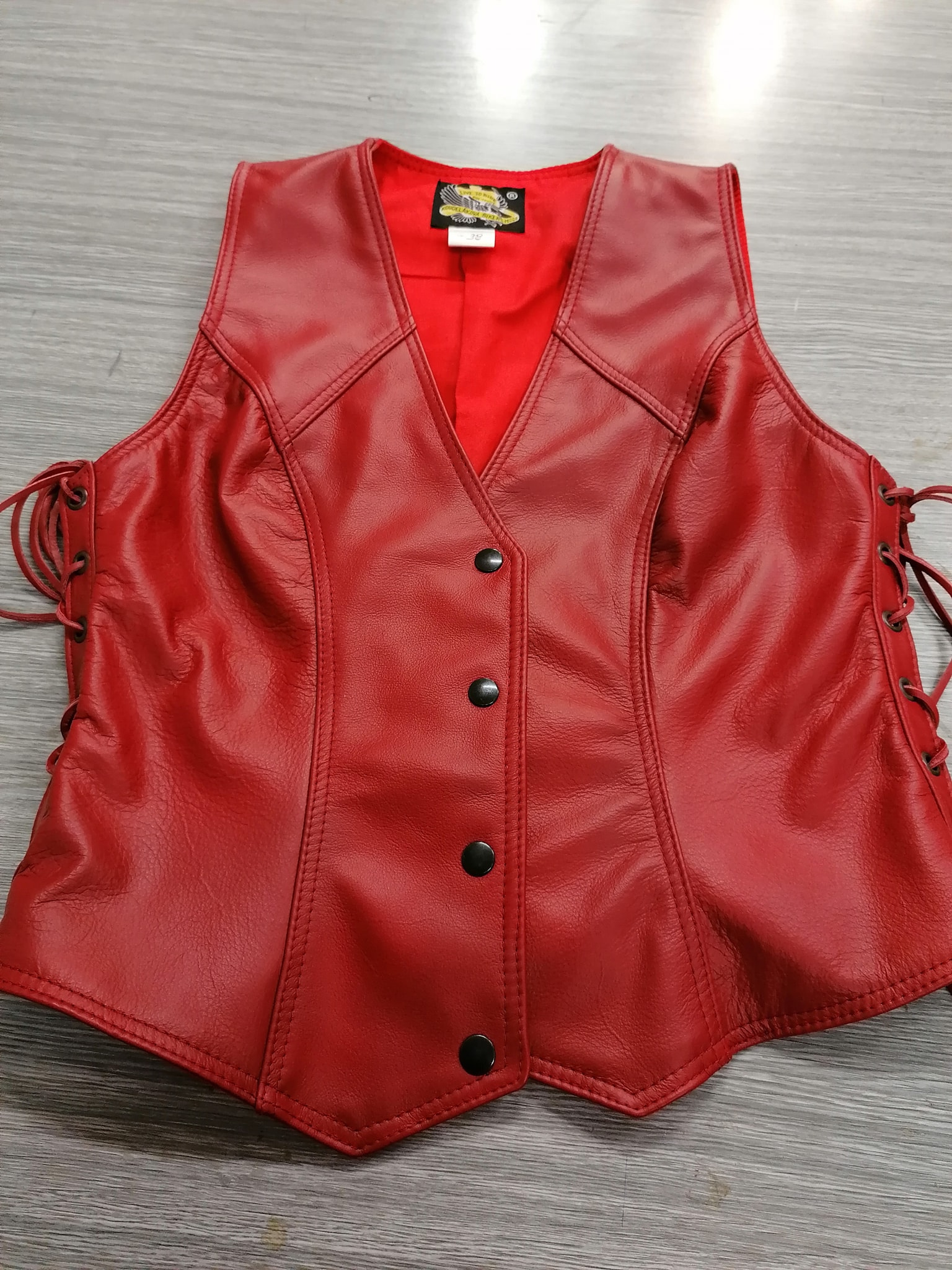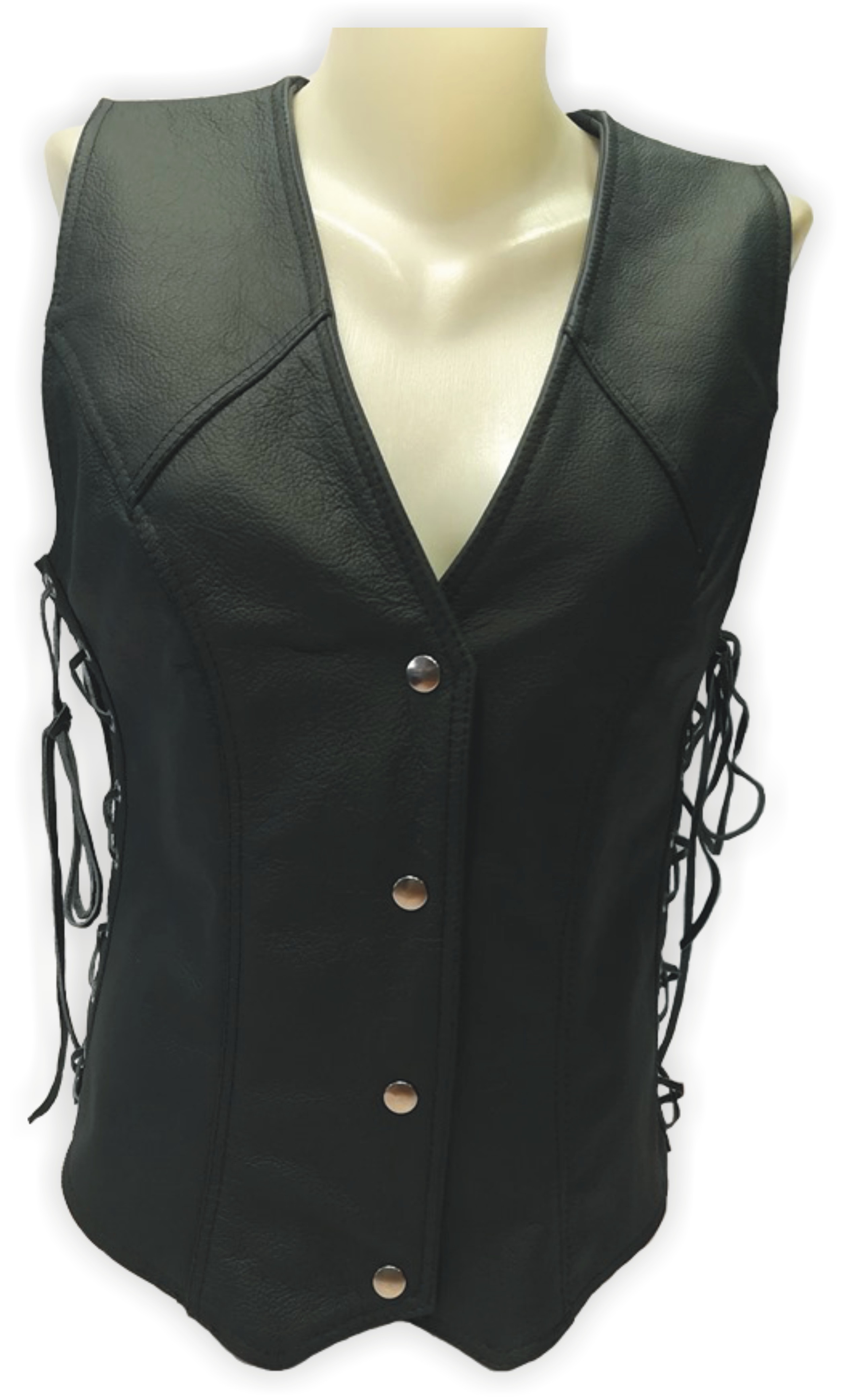 Motorkářská, mírně prodloužená, dámská vesta klasického střihu se šněrováním na bocích z nejkvalitnější hovězí kůže BIKERSMODE VD-4.