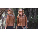 Dámská westernová halenka s okrasným vyšívaním na ramenou a kontrastními švy.