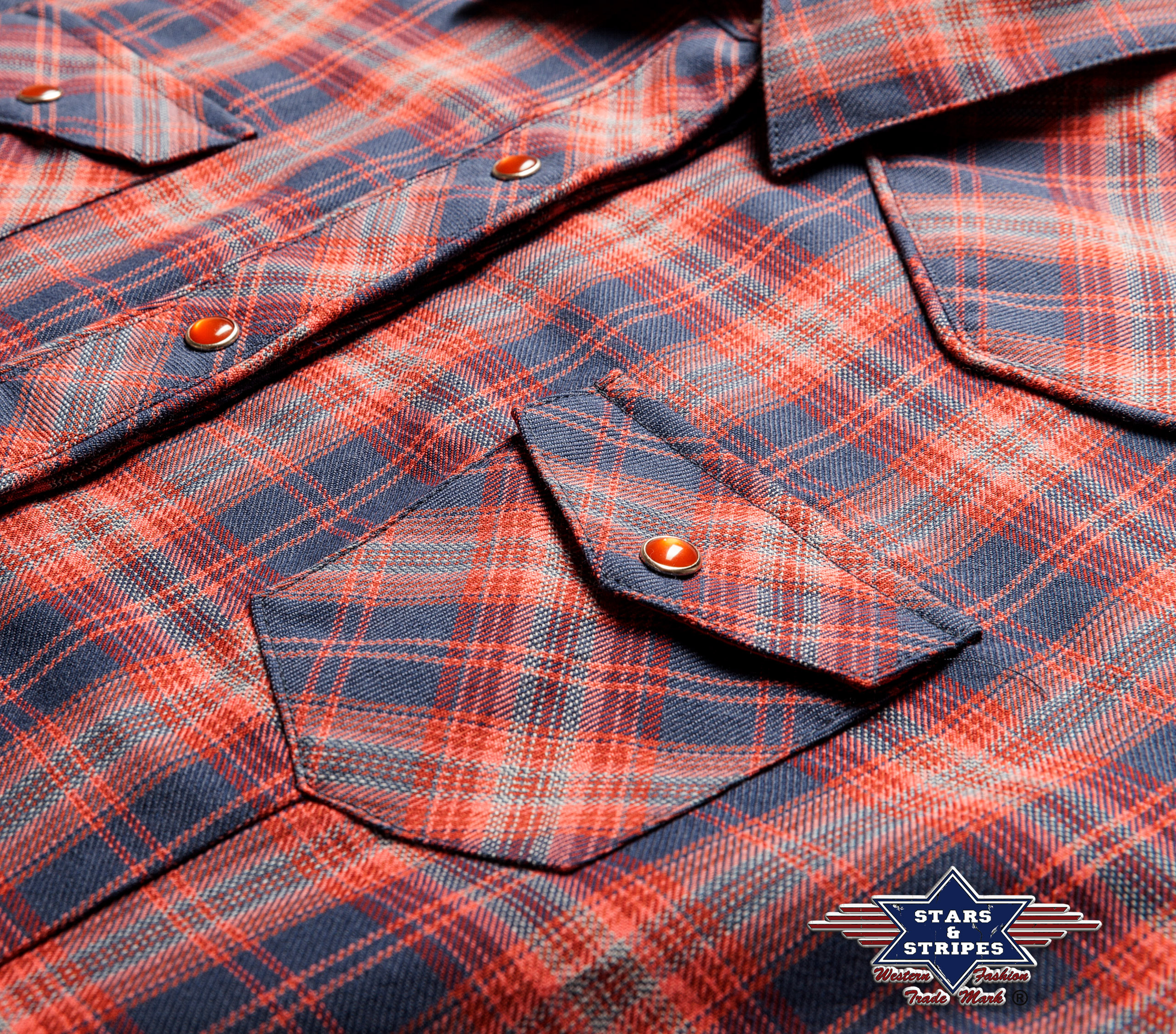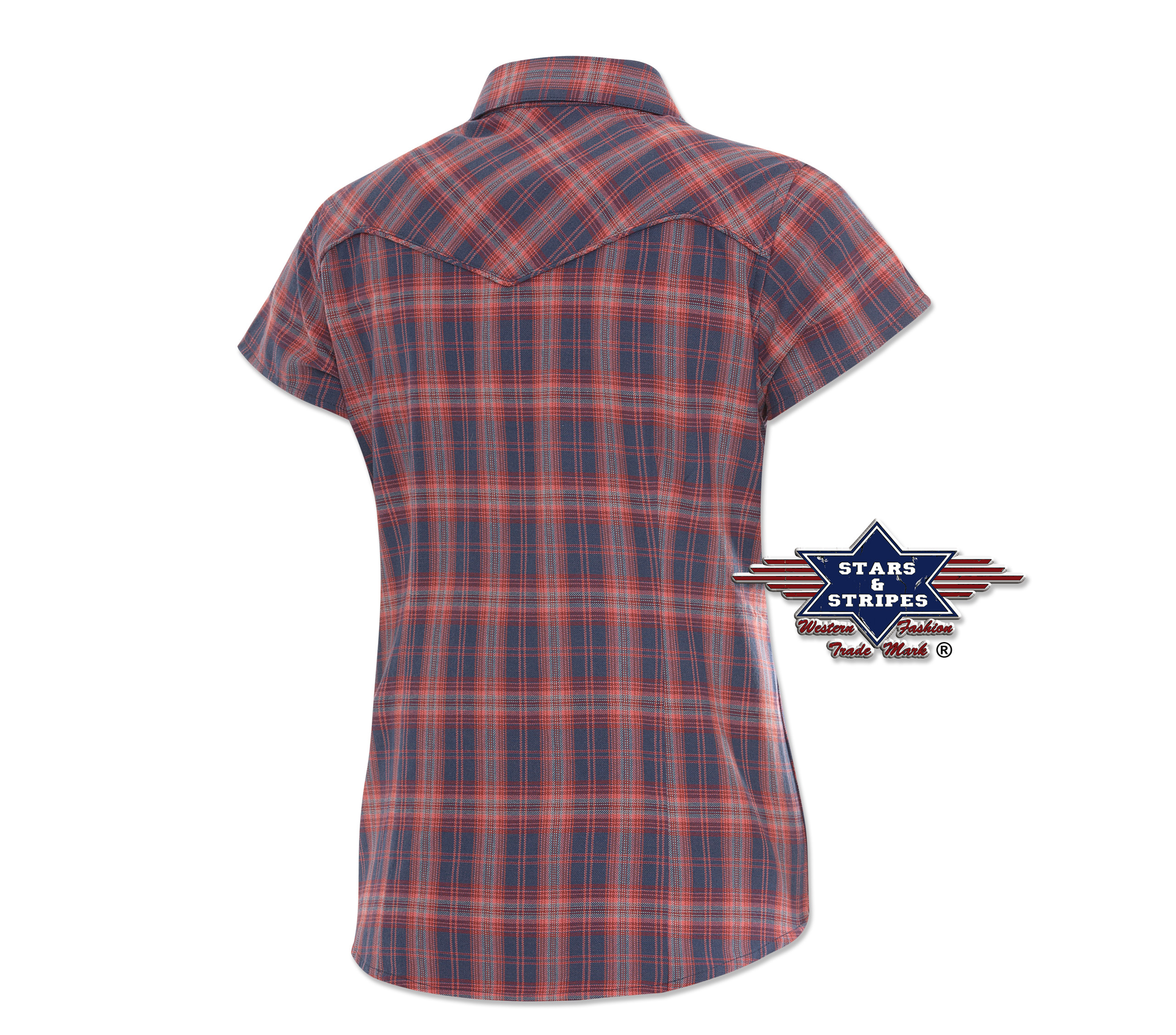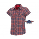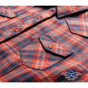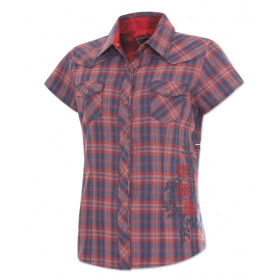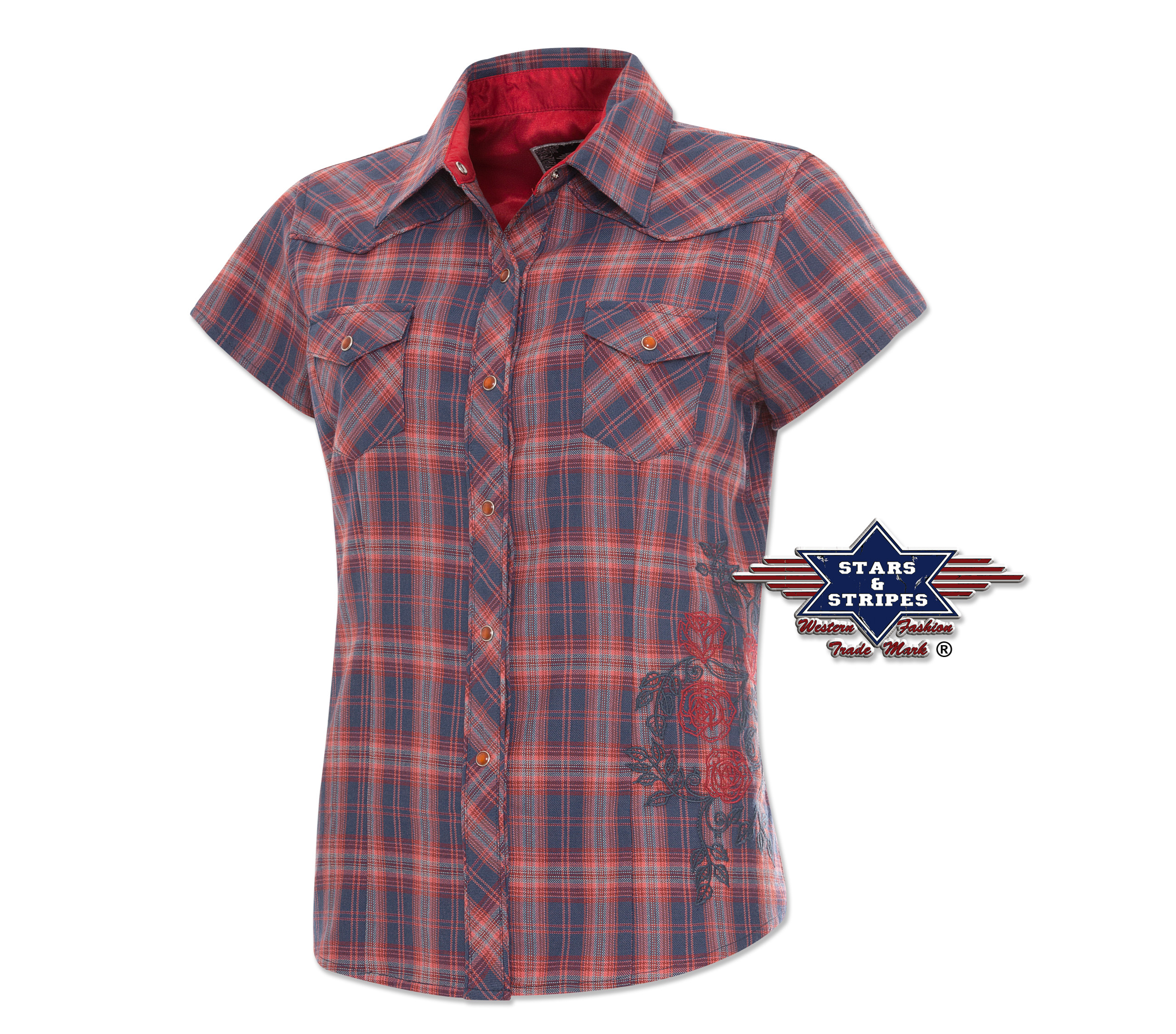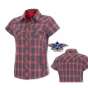 Stylová karovaná dámská halenka s výšivkami, podšívkou ze saténu na límci a prsoua náprsními kapsami, zapínání na druky.