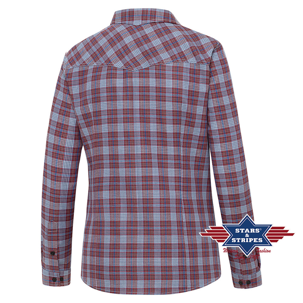 Stylová kostkovaná dámská košile s westernovým sedlem a našitými náprsními kapsami. Design doplňuje látkový lem v límci. Okrasné druky doplňují dokonalý vzhled košile.