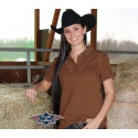 Popis produktu dámská westernová polokošile LeahVysoce kvalitní dámská polokošile s westernovými prvky. Kovové knoflíky, zdobení kontrastním obšitím, mírně prodloužená zádová část. Materiál: 100% bavlna Barva: hnědá Velikosti: S,M,L,XL,XXL,3XL