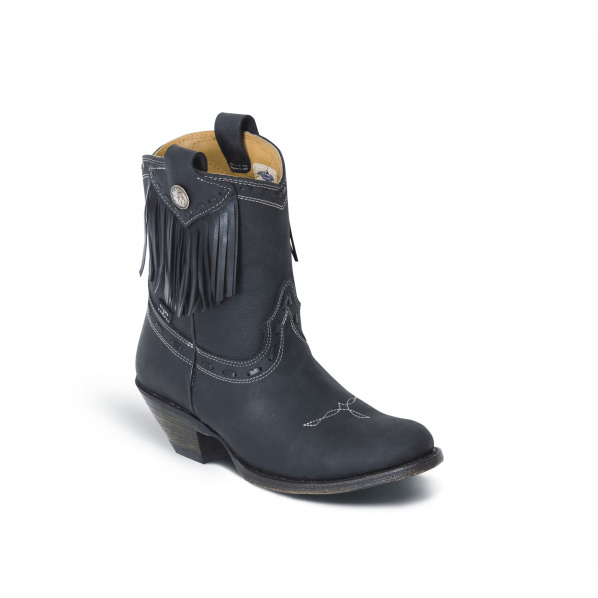 Stylové westernové boty pro náročné "cowgirl". Jsou vyráběny ručně z velmi kvalitní hovězí kůže tradiční mexickou metodou. Podrážka je zdobena, zdrsněna, květinovými vzory a je vyrobena na "hight-quality" Goodyear konstrukci. Měkká pohodlná stélka, třásně.