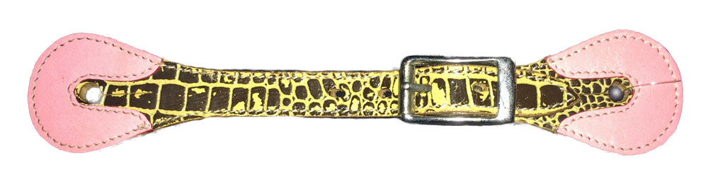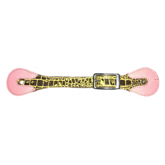 Dámské kožené řemínky k ostruhám z vysokojakostní kůže s hadím vzorem, nerezové kování.