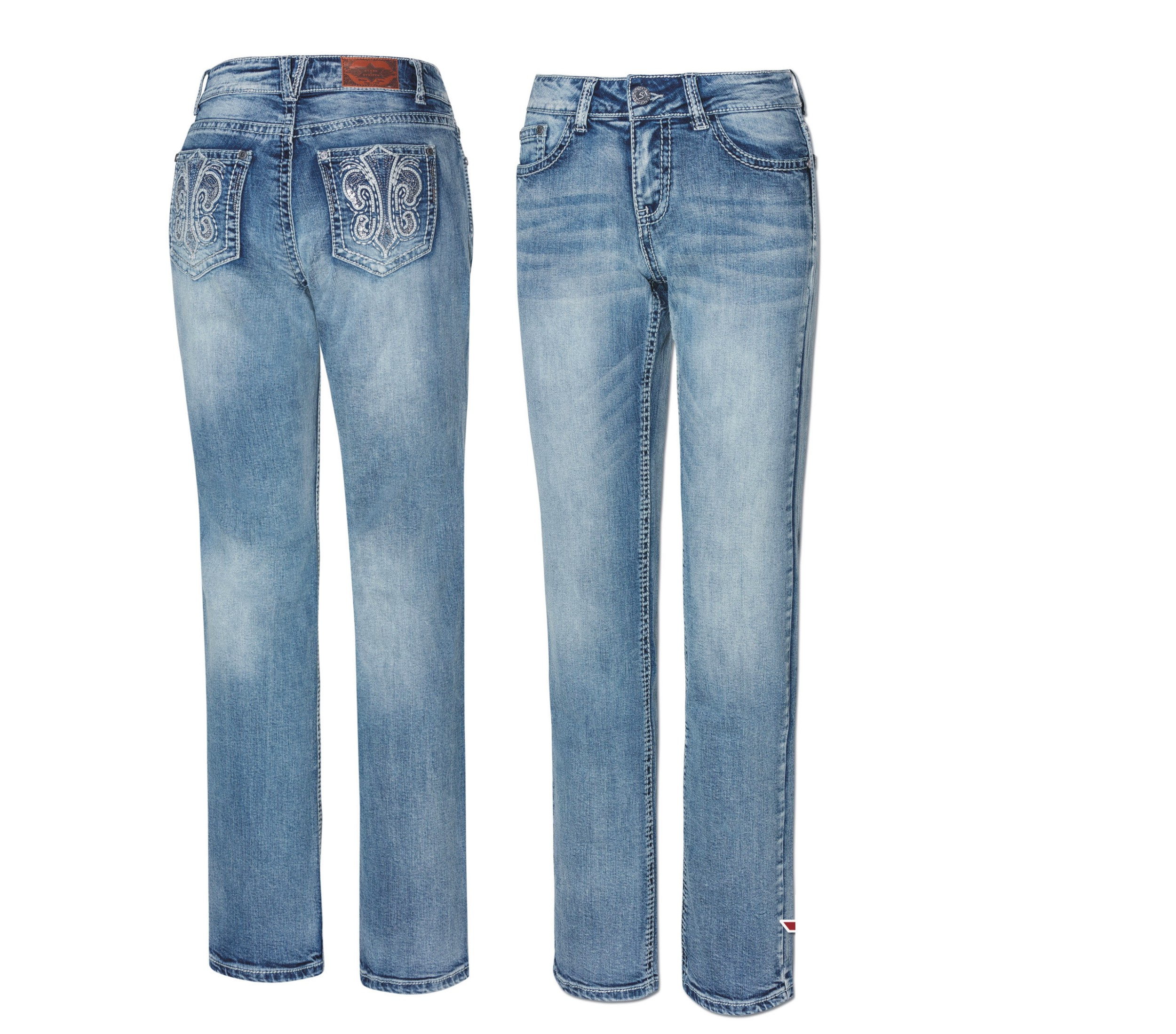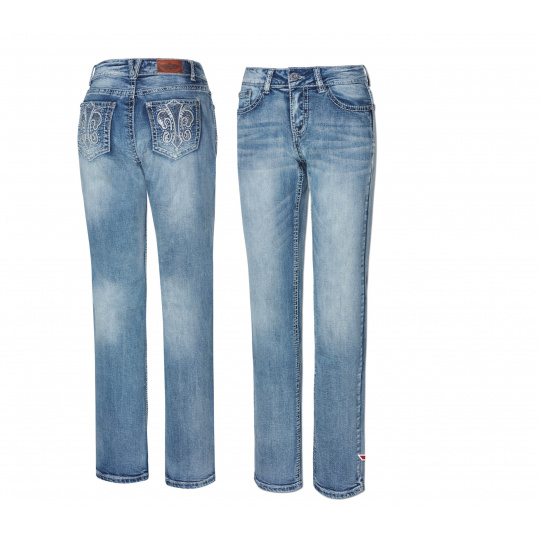 Stylové dámské jeansy LEXI v modré barvě a sepraného vzhledu spojují tradici s moderními materiály. Zdobené efektními výšivkami na zadních kapsách a kontrastním obšitím lemů. Pohodlné nošení zajistí příměs elastanu.