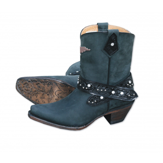 Westernové boty pro náročné "cowgirl". Jsou vyráběny ručně z velmi kvalitní hovězí kůže tradiční mexickou metodou. Podrážka je zdobena, zdrsněna, květinovými vzory a je vyrobena na "hight-quality" Goodyear konstrukci.