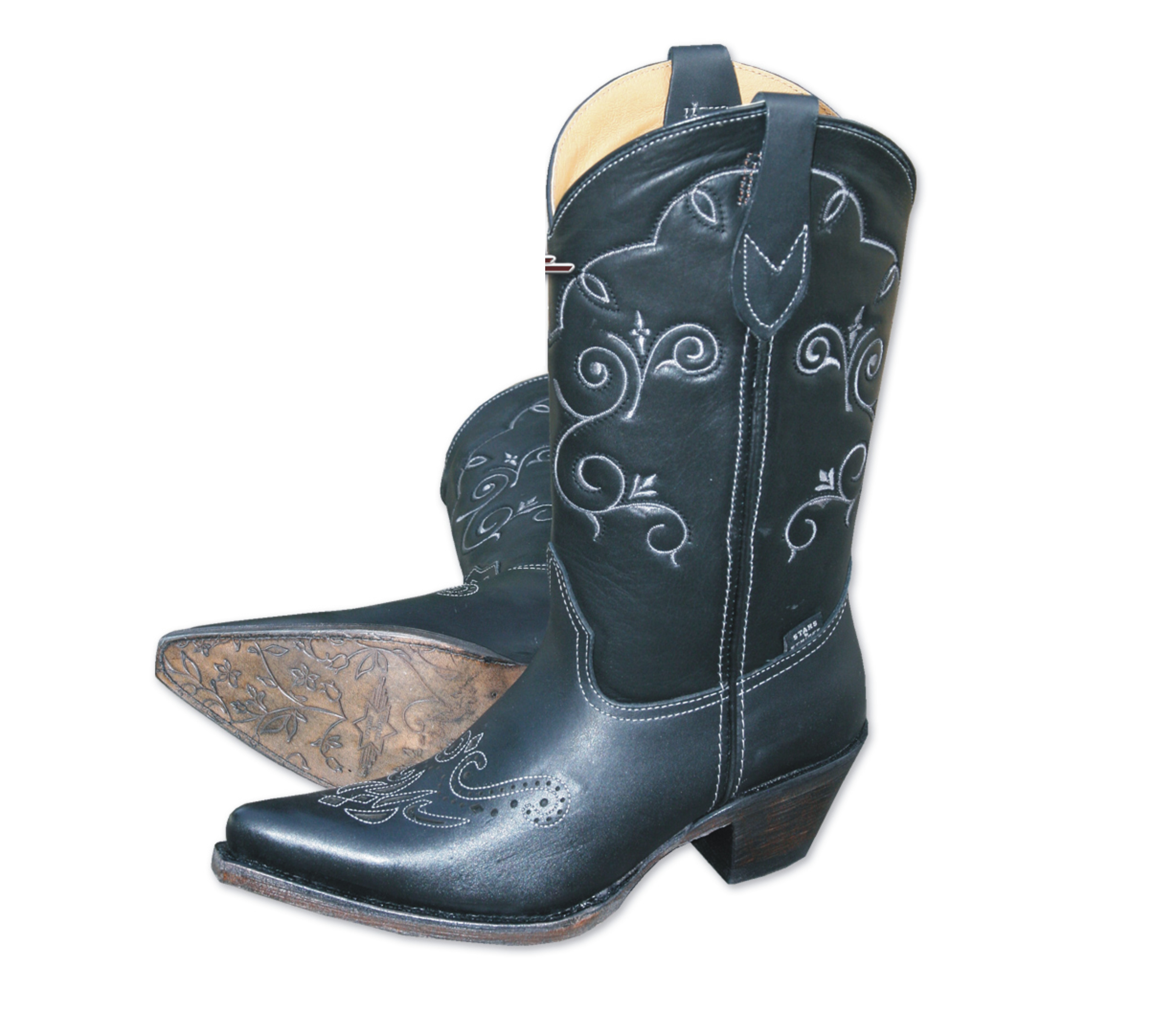 Westernové boty pro náročné "cowgirl". Jsou vyráběny ručně z velmi kvalitní hovězí kůže tradiční mexickou metodou. Podrážka je zdobena, zdrsněna, květinovými vzory a je vyrobena na "hight-quality" Goodyear konstrukci.