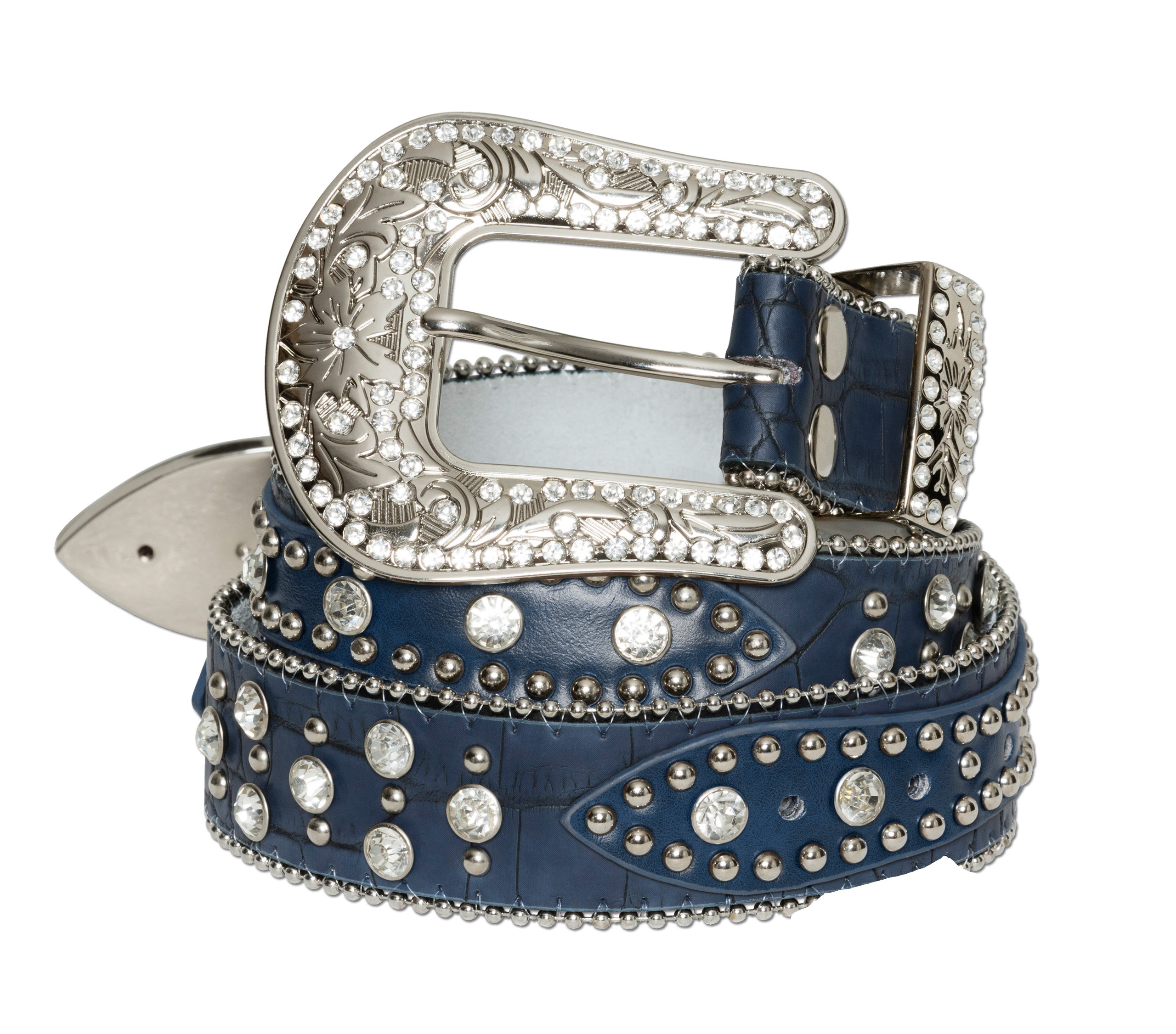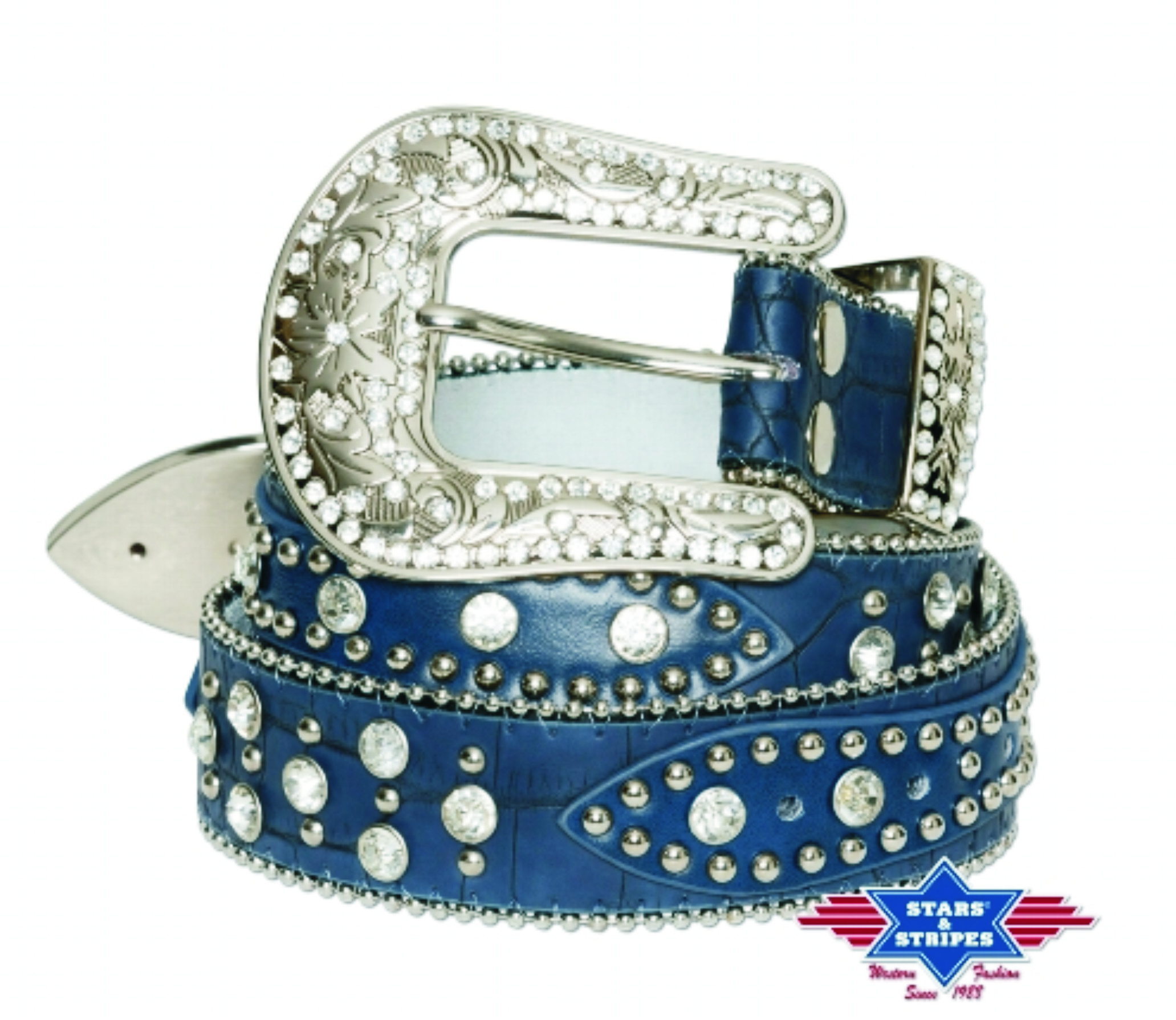Sexy dámský westernový opasek zdobený lesklými kamínky a nýty, s vyměnitelnou přezkou.