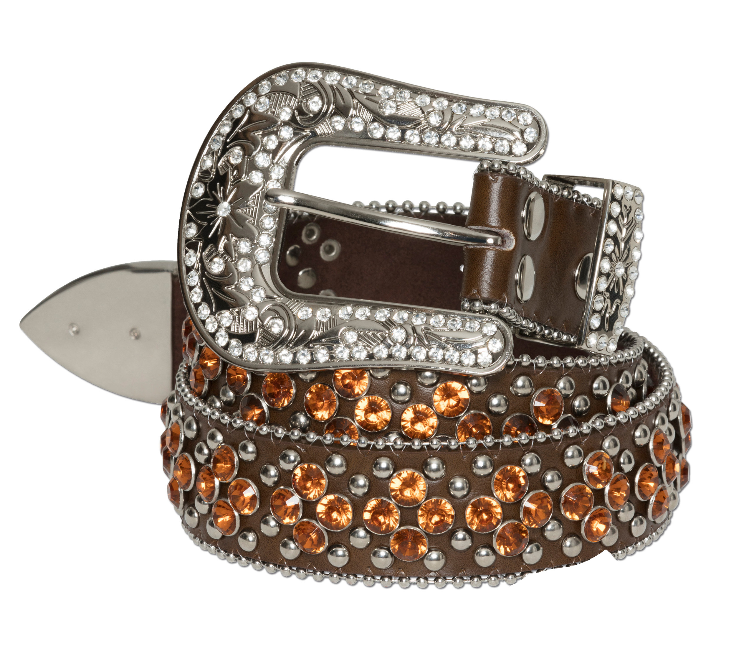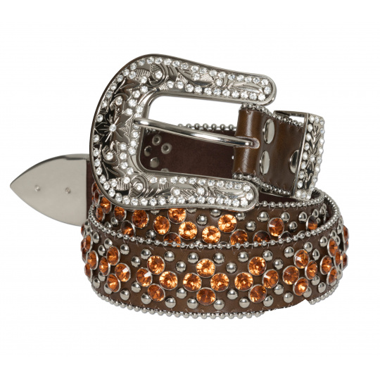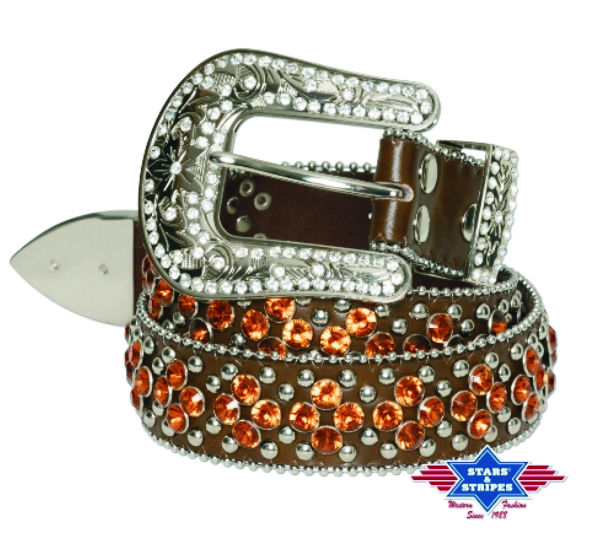 Sexy dámský westernový opasek zdobený lesklými kamínky a nýty, s vyměnitelnou přezkou.