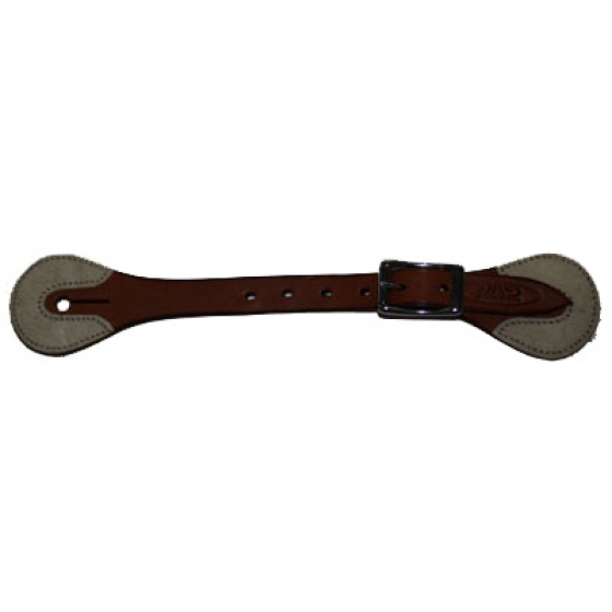 Westernové hladké kožené řemínky k ostruhám z vysokojakostní kůže zdobené na koncích chlupatou hovězí kůží. Nerezové kování.