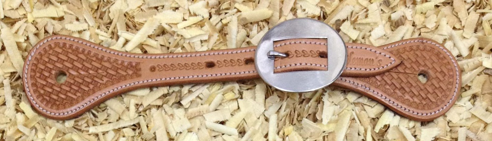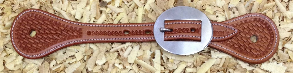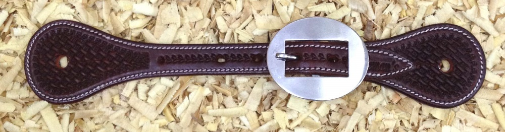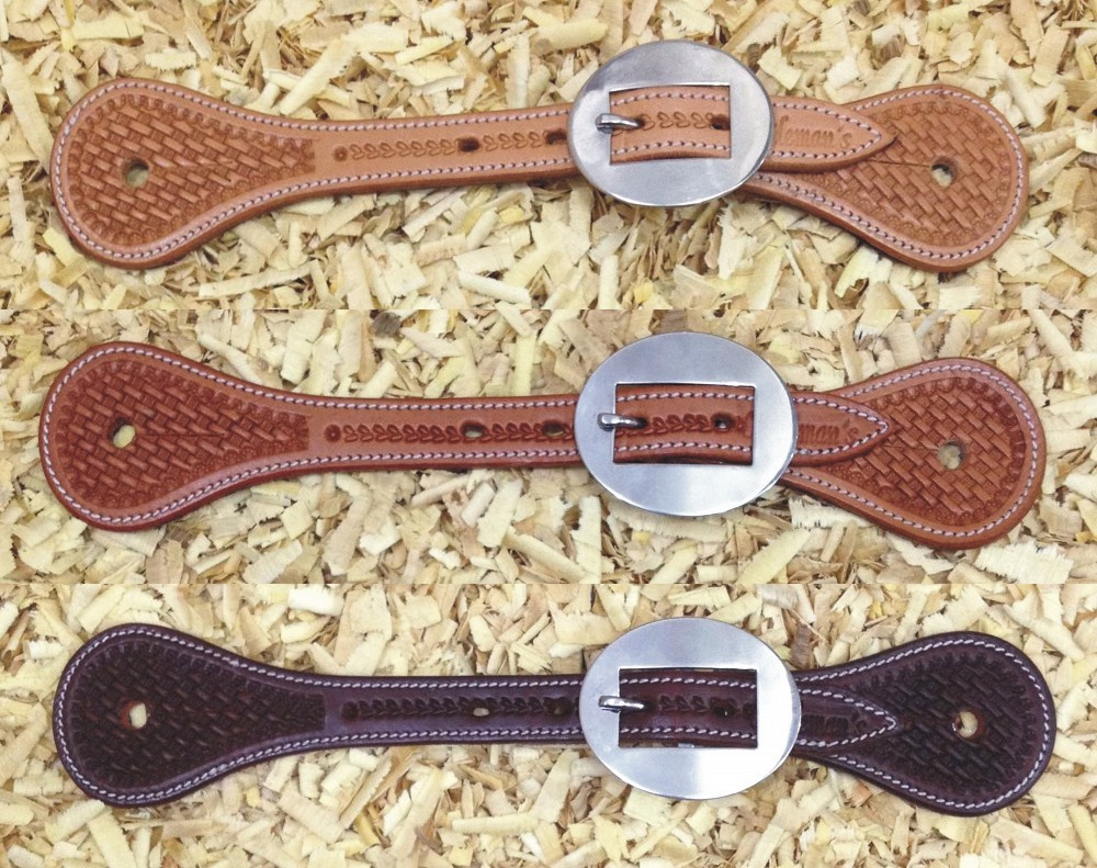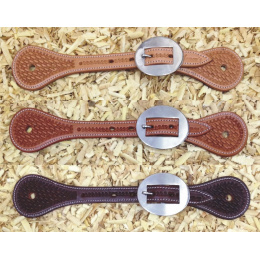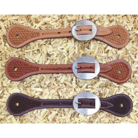 Westernové kožené řemínky k ostruhám Cattleman´s zdobené jemným basketem, obšité a podložené telecí kůží. Nerezové kování.