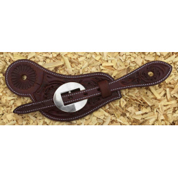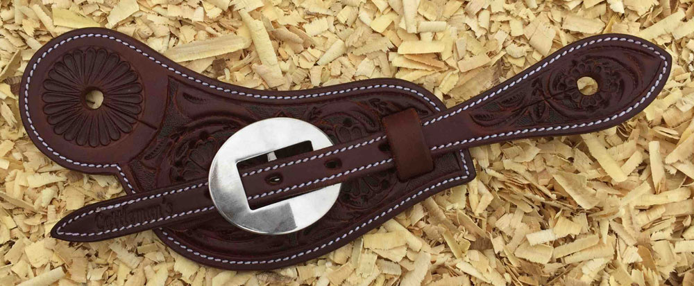 Westernové kožené řemínky k ostruhám Cattleman´s zdobené květinovým vzorem, obšité a podložené telecí kůží. Nerezové kování.