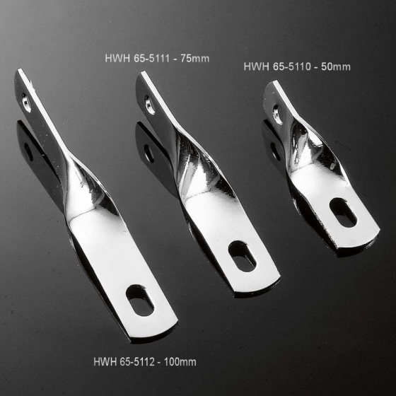 Držák výfuku kroucený o 90°, universální, rozměry: délka 50 nebo 75 nebo 100 mm, materiál: ocel, povrchová úprava: chrom, balení: 1 ks.