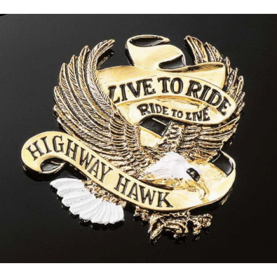 Emblém samolepící orel LIVE TO RIDE, barva červená (šířka 43 a 71 mm) nebo zlatá (šířka 40 mm nebo 80 mm).