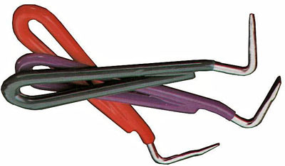 Kovový háček na kopyta s rukojetí potaženou bužírkou.