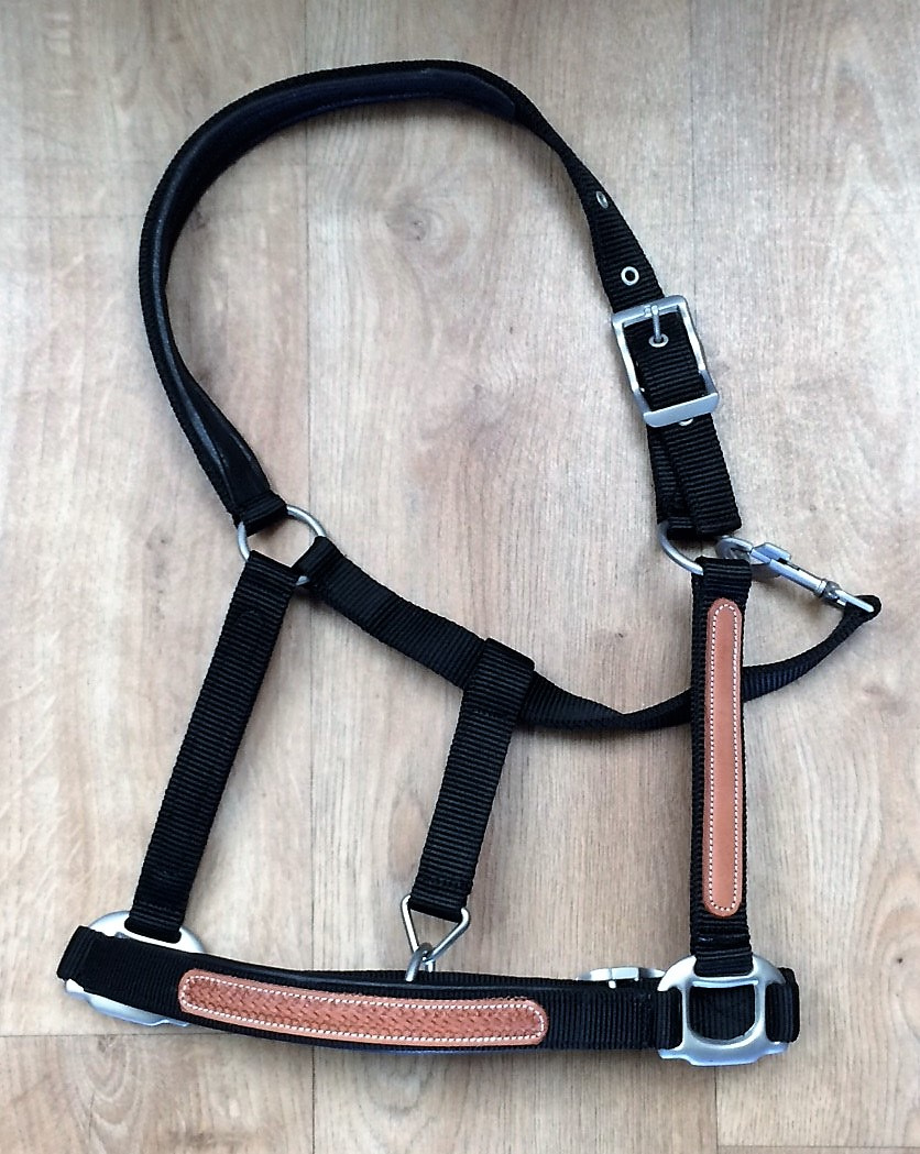 Kvalitní Polypropylénová ohlávka zdobená kůží s vytlačeným basketem, na bocích hladká. Na temeni a nose podložená měkkým polstrováním.