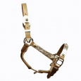 Westernová kožená show ohlávka IXIO je zdobena gravírovaným kovem ve stříbrné barvě s plastickými hvězdami ve zlaté barvě, Barva: světlá přírodní a hnědá mahagon Vel: FULL