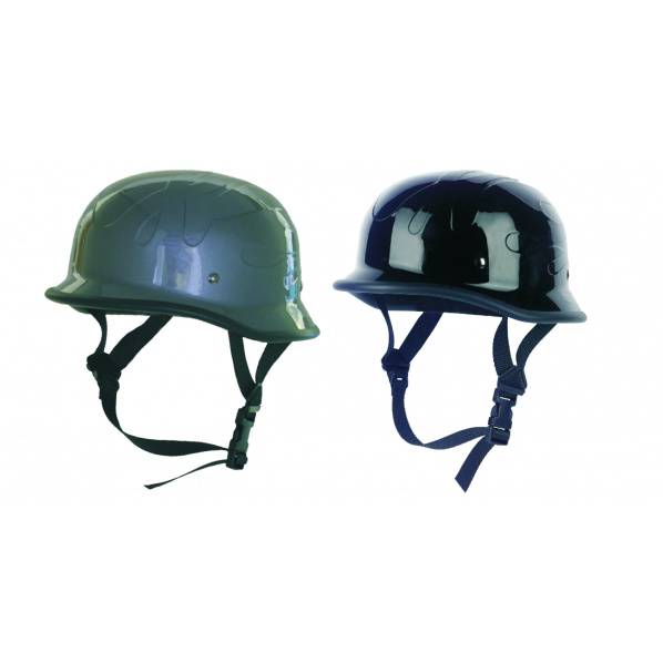 Popis produktu helma Braincap - skořápka německáMotocyklová přilba vhodná jako doplněk motorkáře, materiál ABS, vnitřní podšívka Polyamid, váha 450 g, pozor !!! NEMÁ HOMOLOGACI!!! univerzální velikost, na helmě je uvedena velikost L, prolisy ve tvaru plamenů barva: černá lesklá, šedá lesklá
