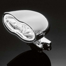 Hlavní světlo Double oval s bílým nebo modrým sklem, homologováno dle Evropské normy, žárovka 2x H3 12V55W, rozměry: výška 70mm, šířka 160mm, hloubka 125mm, provedení chrom nebo černění, balení: 1ks