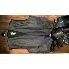 Kvalitní kožená vesta Bikersmode. Velikost: 62 (hrudník cca 122-124 cm) Barva: Černá Stav: málo po