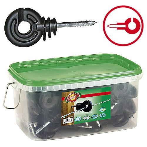 Praktický izolátor pro elektrické ohradníky, s vrutem 5 mm. Izolátor by měl být zašroubován celou plochou vrutu až po plastovou část ke kůlu. Pokud tomu tak neučiníte, zapříčiníte namáhání izolátoru s rizikem ulomení.