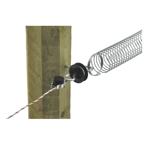 Koncový izolátor je doplněn dvěma kovovými oblouky. Na jeden lze připojit koncový vodič ohrady a na Více