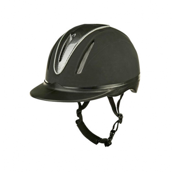 Elegantní jezdecká přilba od firmy HKM. Přilba je vyrobená z kvalitních materiálů, výborně tlumí nárazy ( odpovídá nové bezpečnostní normě VG1.01.040 2014-12 ), má dobrý tvar, větrací otvory, které zajišťují dobrou cirkulaci vzduchu. Díky otočnému kolečku má variabilní a jednoduché nastavení.