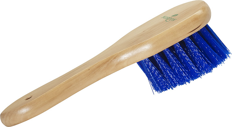 Kartáč na kopyta, dřevěná anatomicky tvarovaná rukojeť, tvrdý umělý vlas na čištění kopyta.